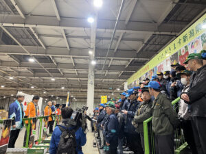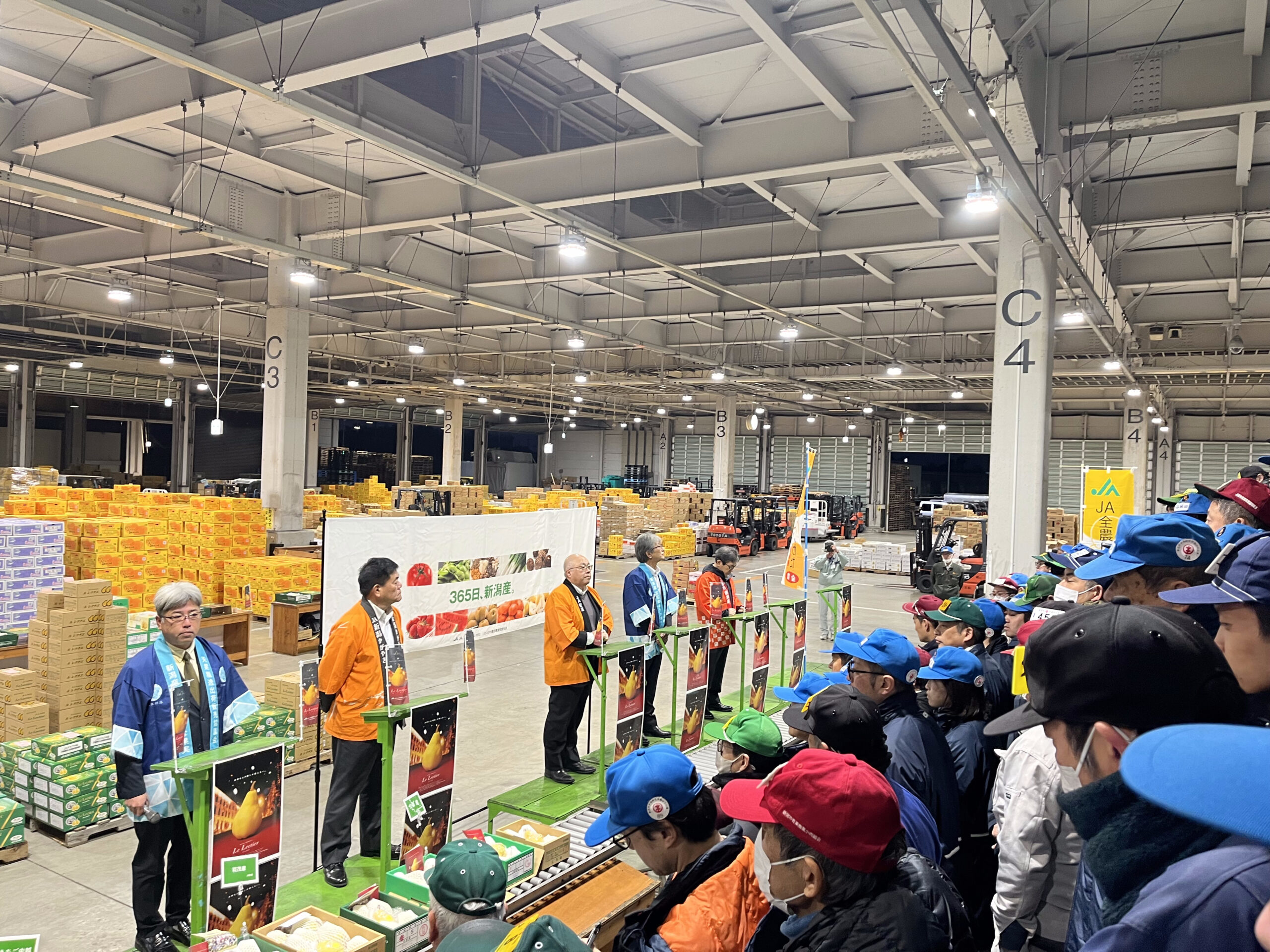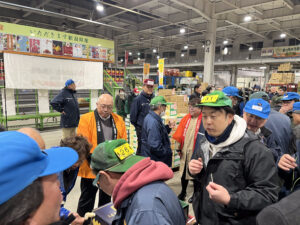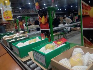 11月20日(木) 新潟県産 「ル レクチエ」の 出荷開始PRが新潟市中央卸売市場内の青果棟 セリ台にて 行われました。