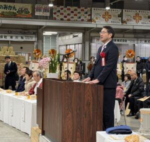 ご来賓皆様方よりご臨席賜りましたことに心より厚く御礼申し上げ、併せて皆々様の新しい年、令和8年のご多幸を心よりご祈念申し上げまして、初市のご挨拶とさせていただきます。