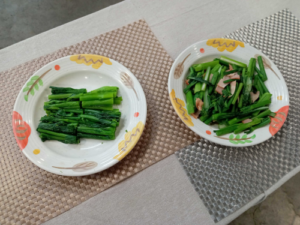 緑黄色野菜です。寒さで甘みが増し、茎がアスパラガスのように甘くて柔らかく、